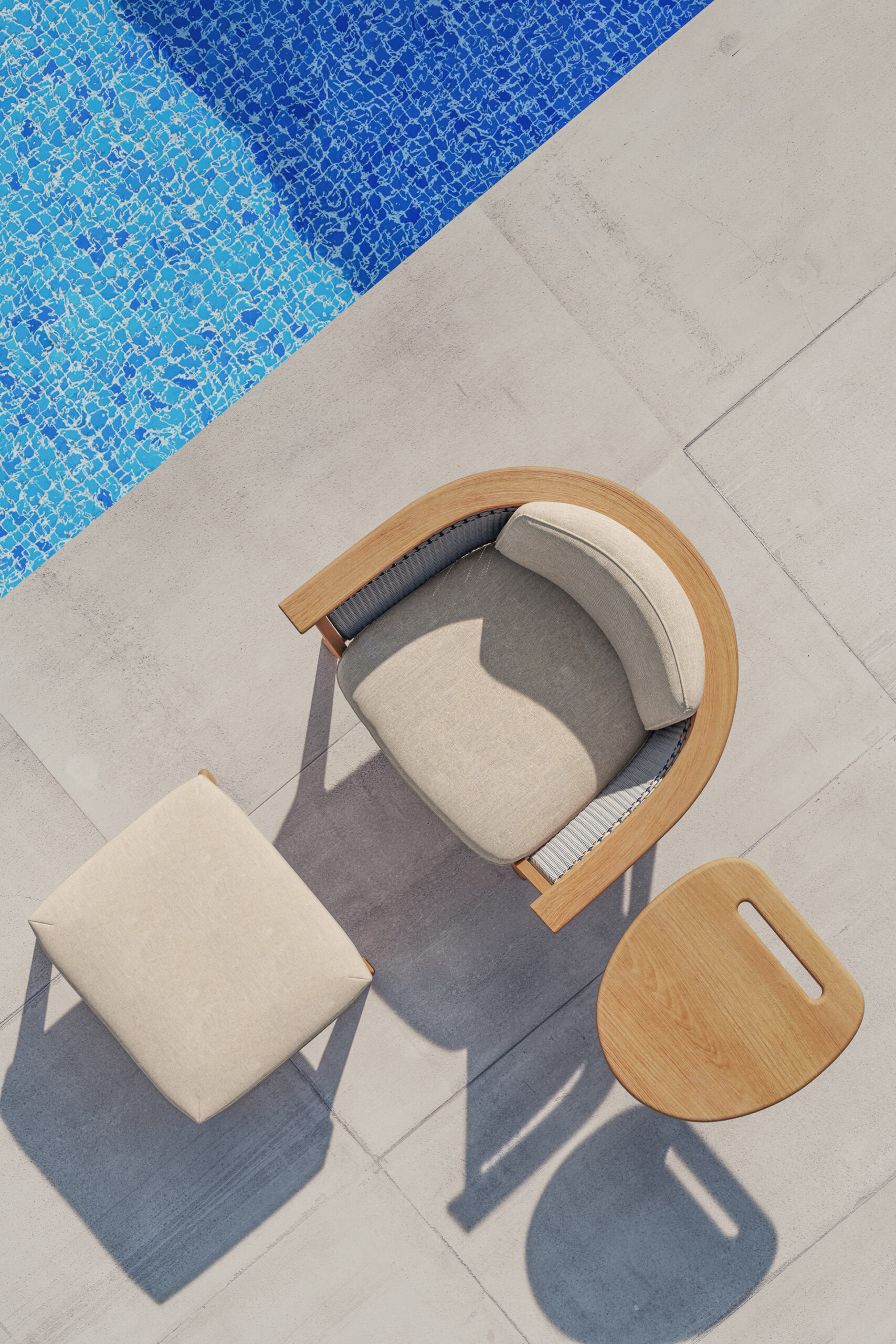 A true expression of the Foundations Collection’s minimalist aesthetic, the Arc Occasional Tables unite timeless materials with contemporary design. Built for residential outdoor living, each table is as durable as it is refined. Ipe tops begin in a deep chocolate brown hue that can be preserved with care or allowed to age into a silvery patina, while Teak offers a warm golden tone that similarly weathers with elegance. Whether placed beside a lounge chair or centered within a seating area, the Arc tables deliver lasting style and substance in any outdoor setting.