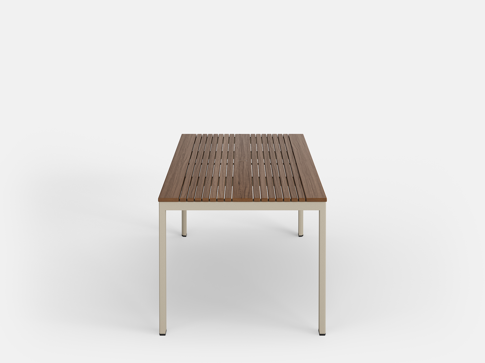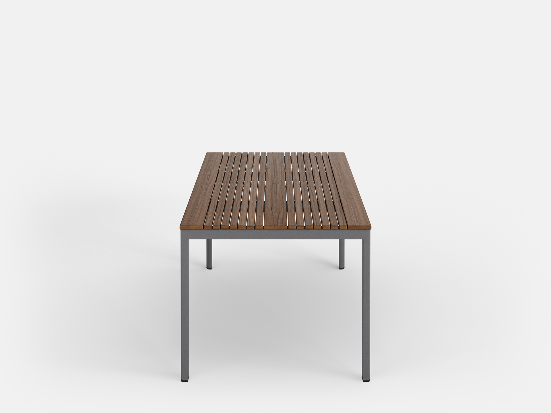 Perfectly proportioned for intimate outdoor dining, the Mesa table was thoughtfully designed to complement the aesthetic and proportions of the Breeze and Harmony seating collections. Both the Ipe and aluminum elements are chosen for their exceptional durability, weather resistance, and refined beauty. Whether surrounded by relaxed sling seating or structured Ipe dining chairs, this square table creates a grounded and elevated foundation for open-air gatherings.